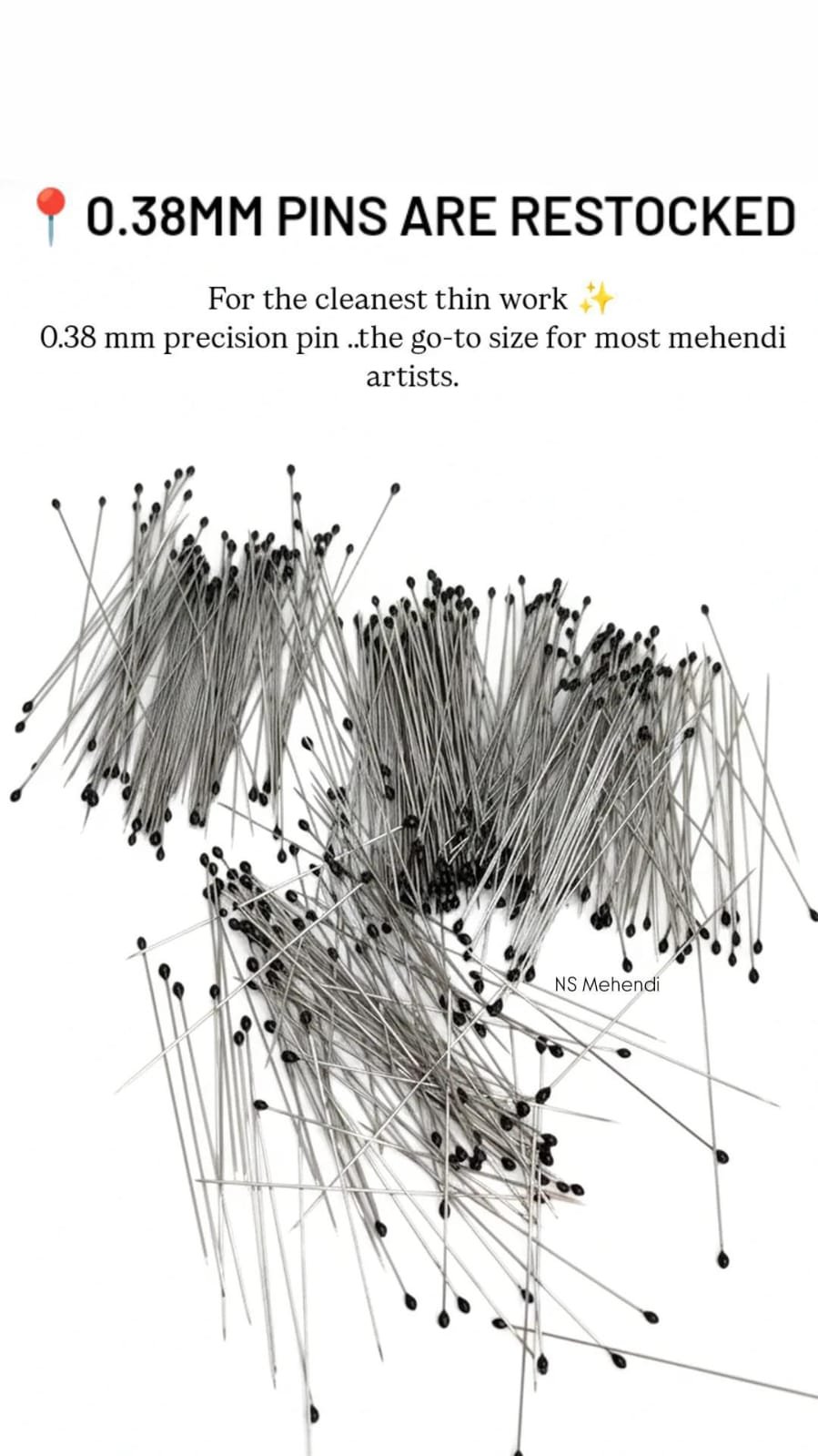 These 0.38 mm henna pins are ideal for ultra-fine mehendi detailing and maintaining small cone openings. Useful for cleaning cone tips and ensuring smooth, controlled paste flow during intricate design work.