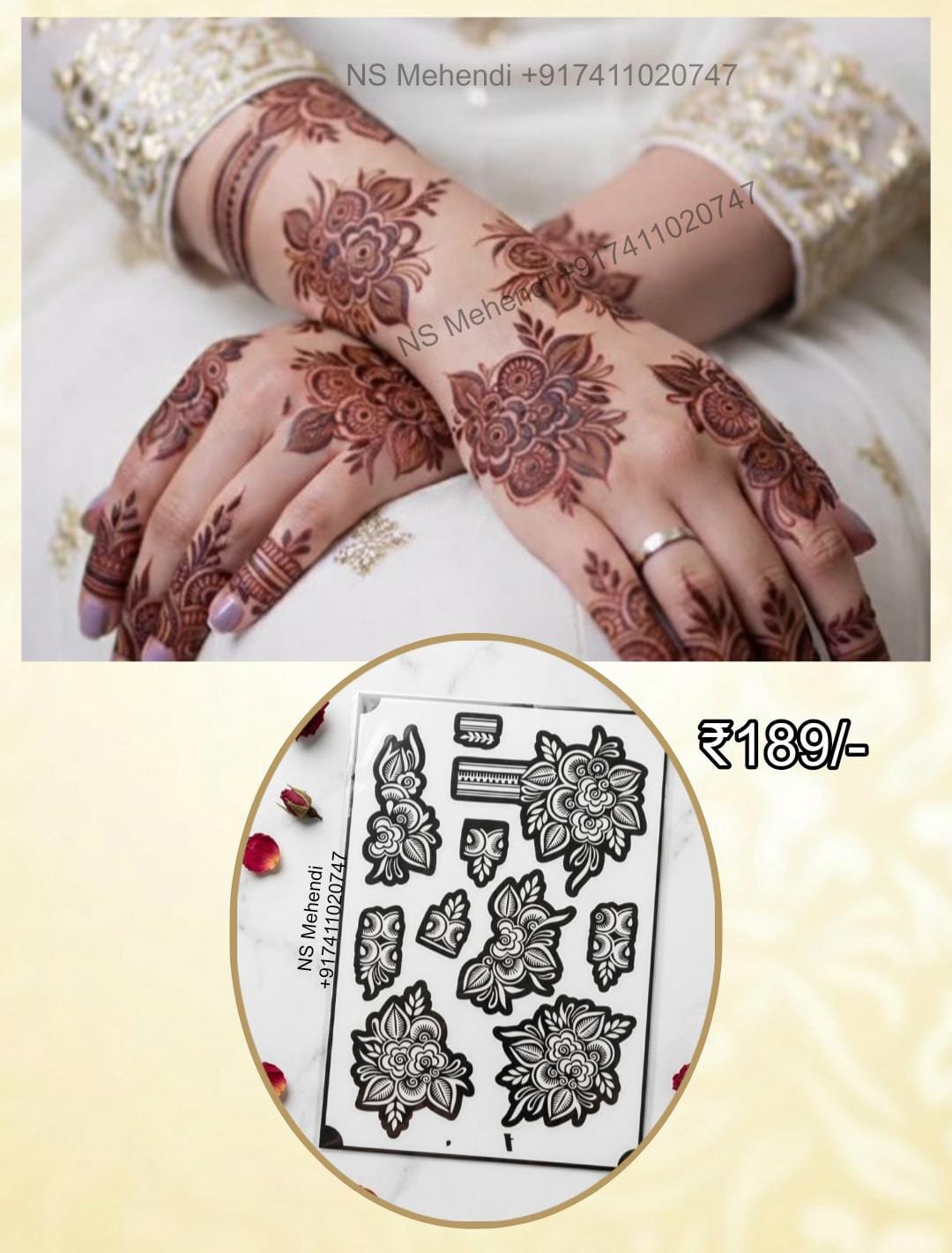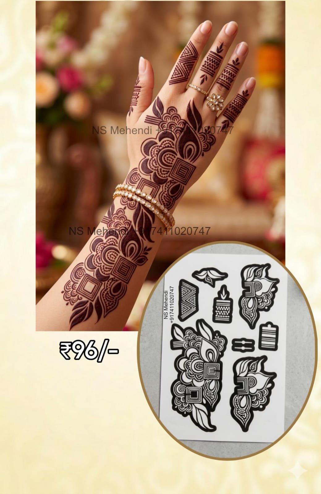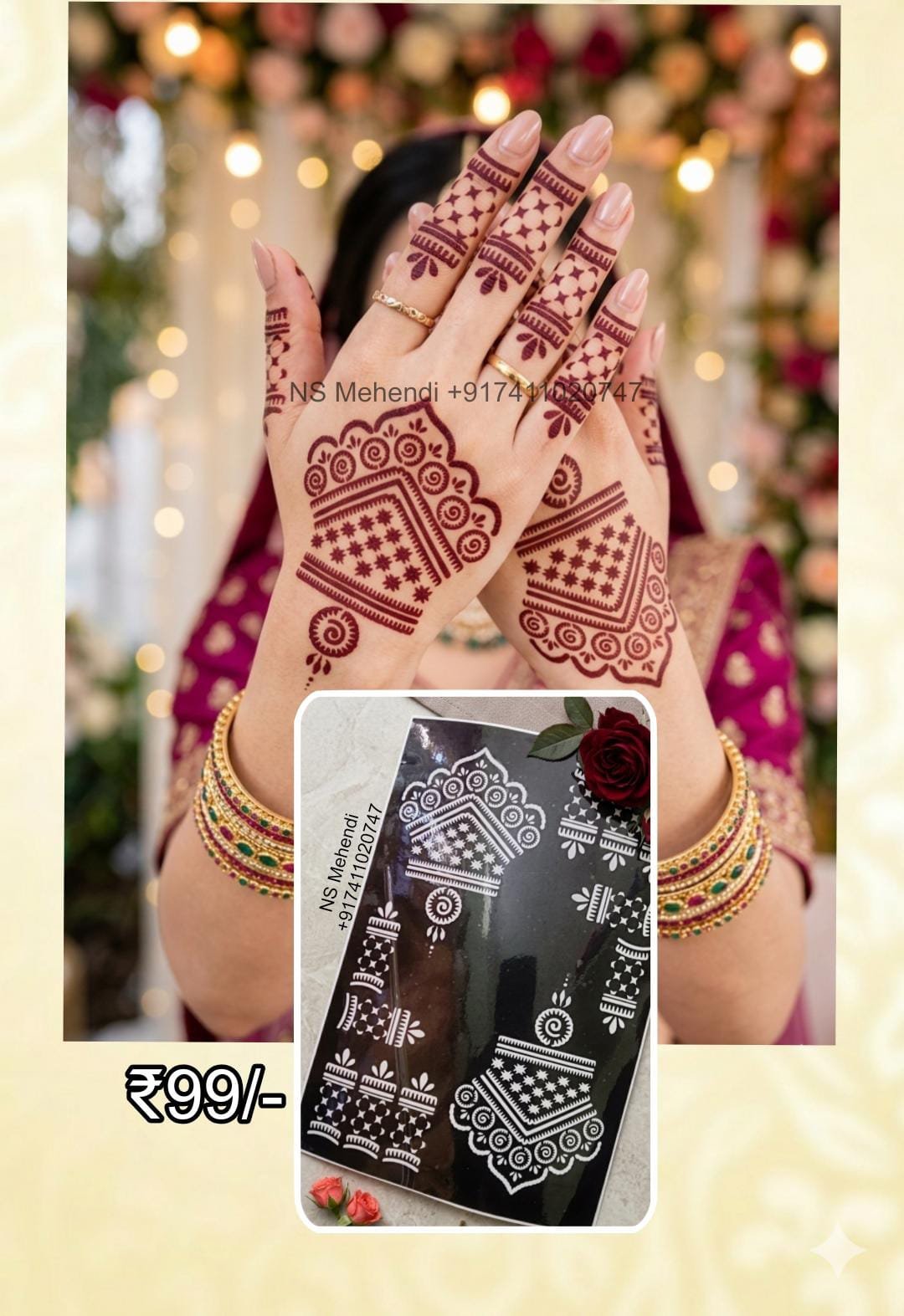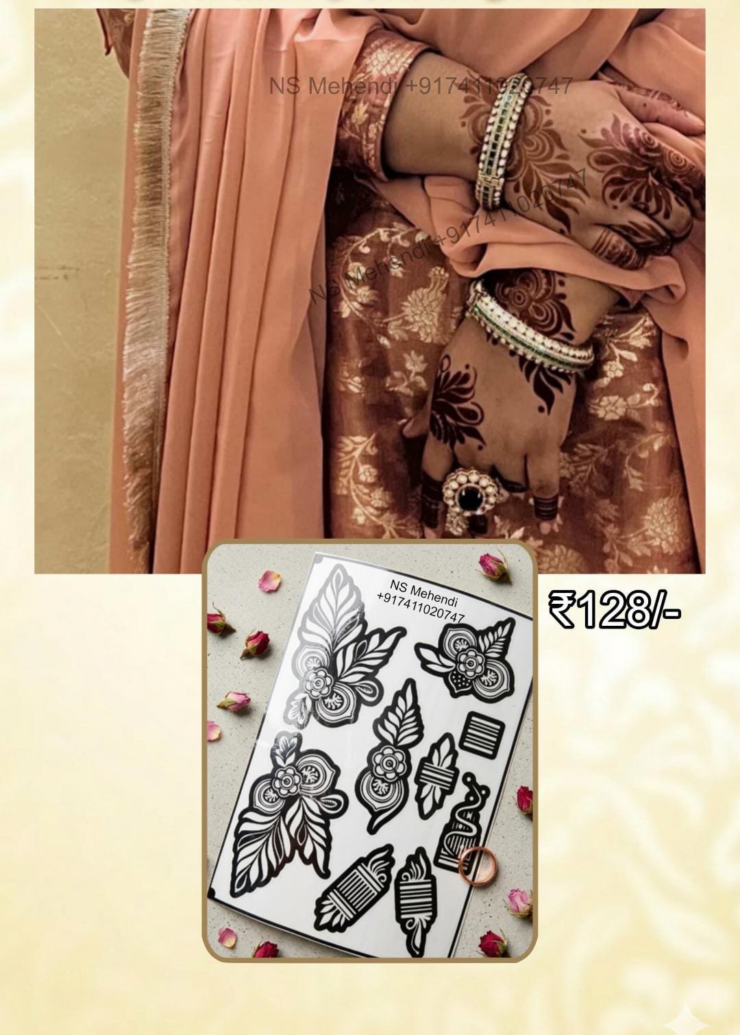 4️⃣ Apply henna evenly over the stencil design.