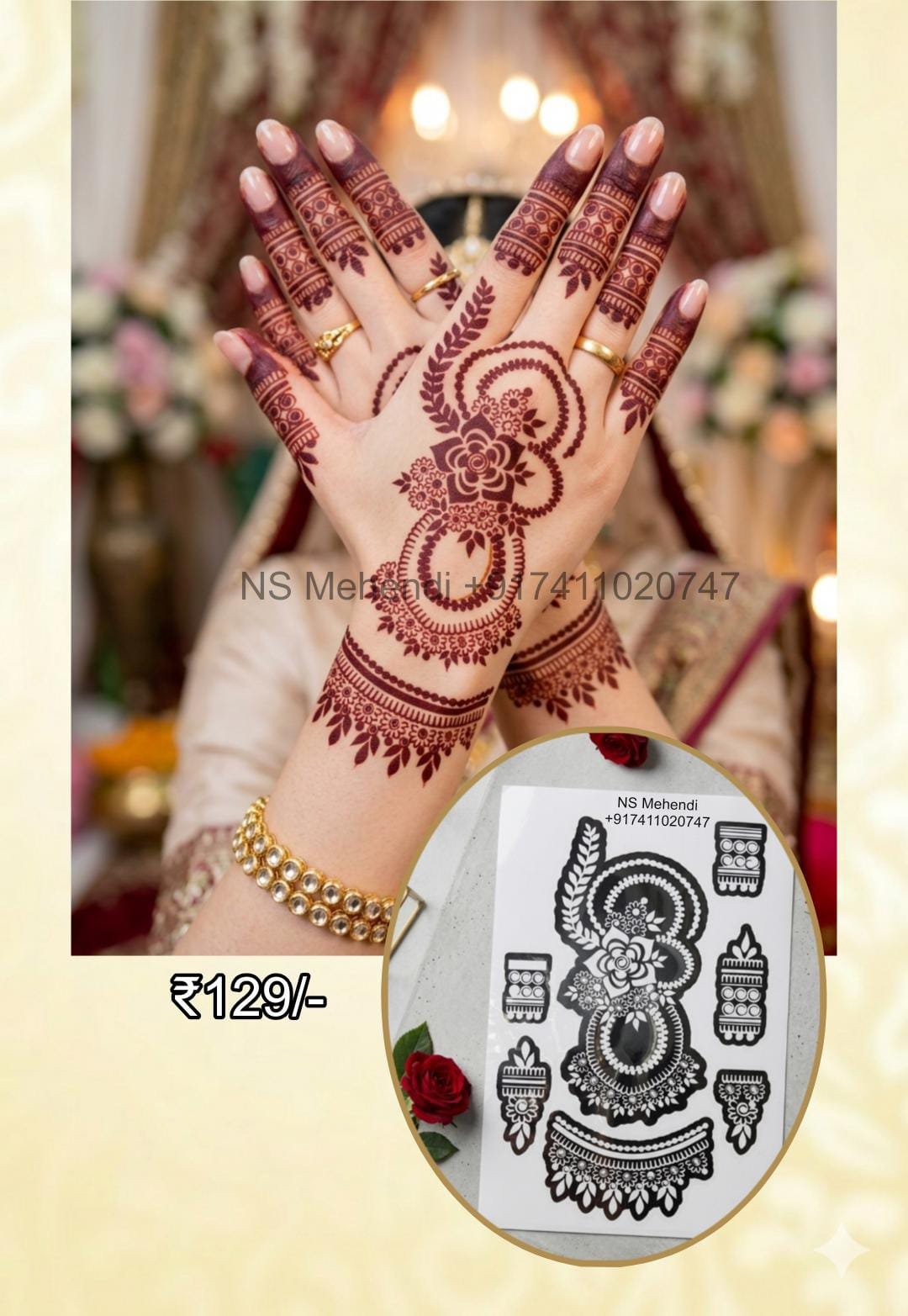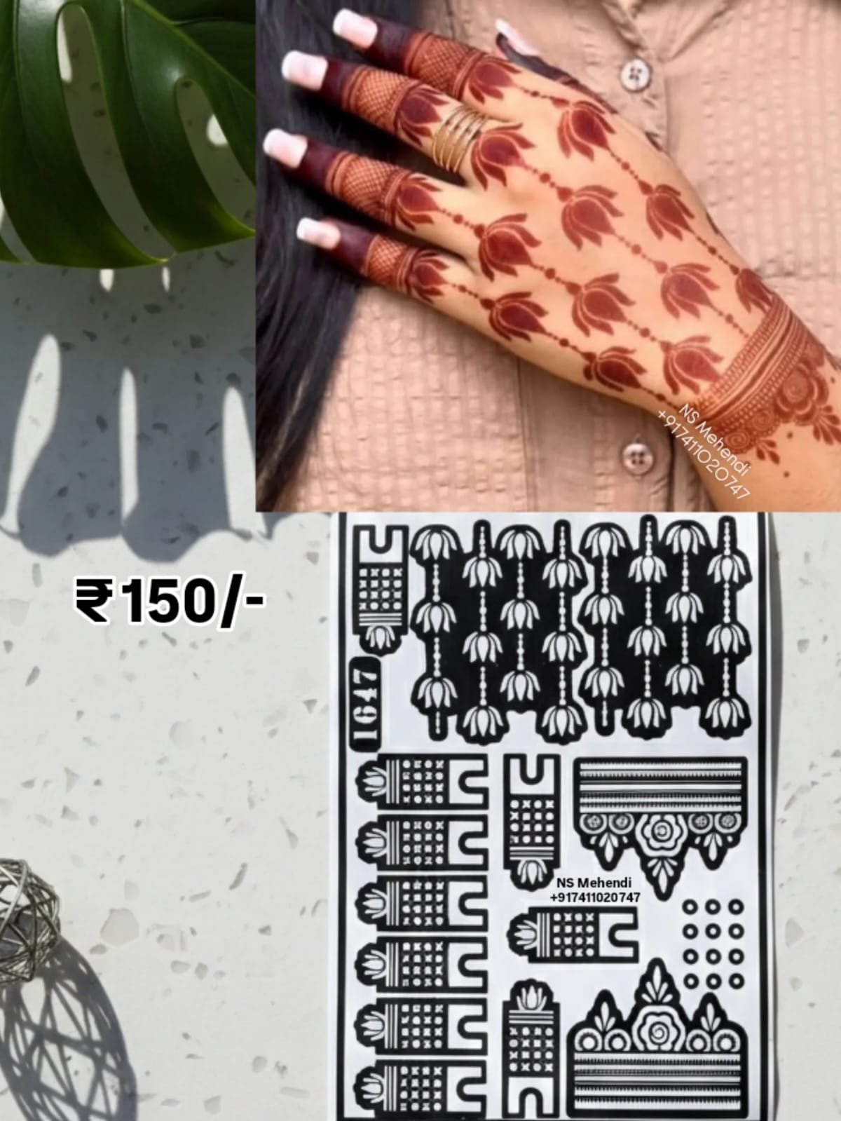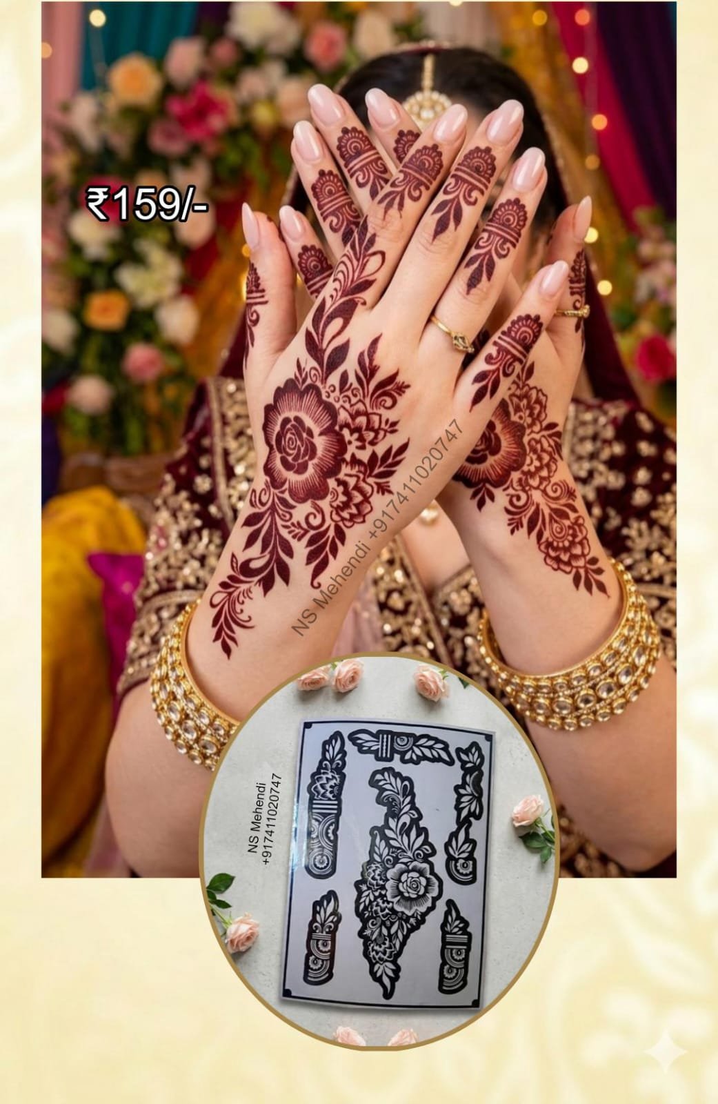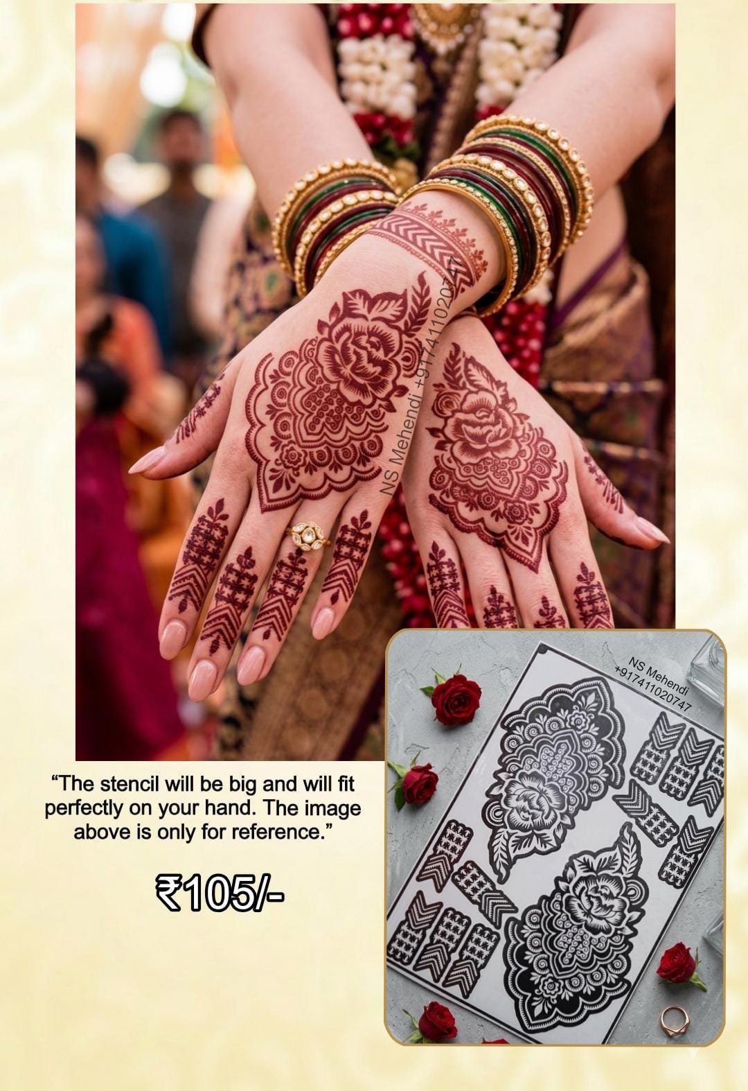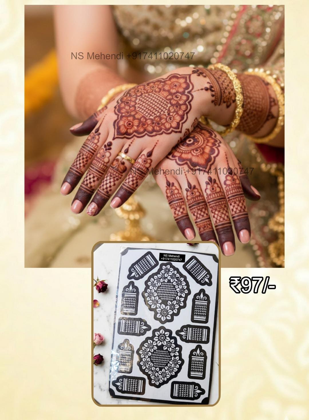 4️⃣ Apply henna evenly over the stencil design.